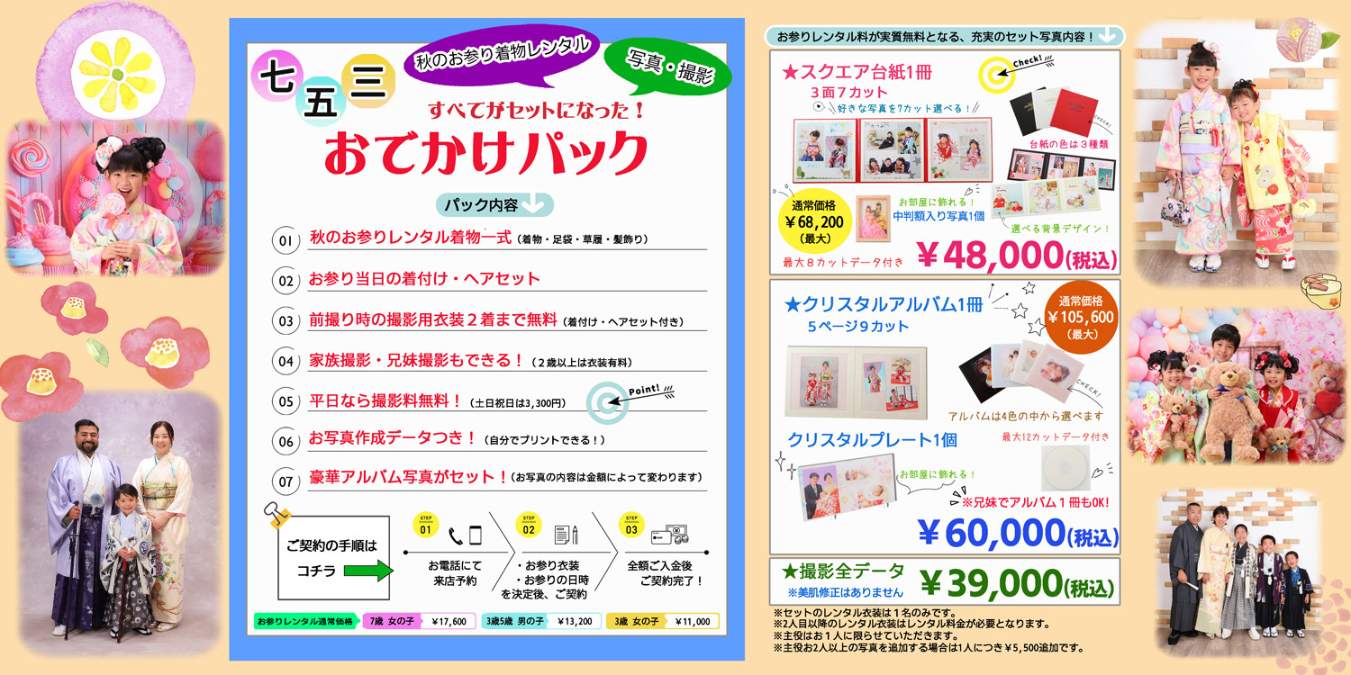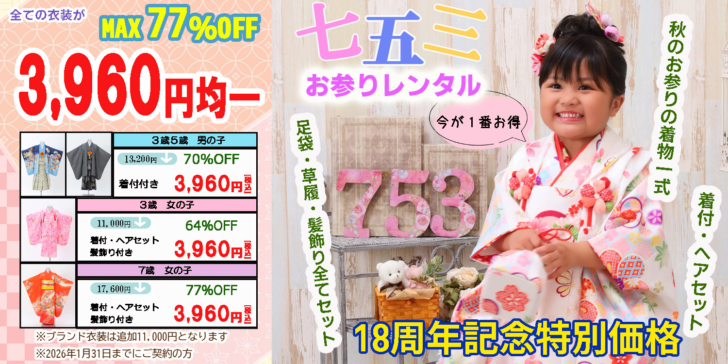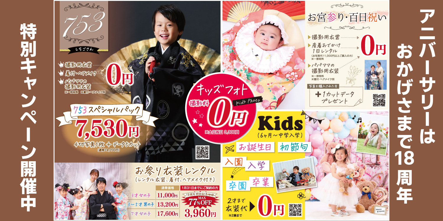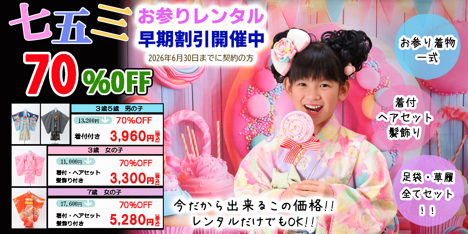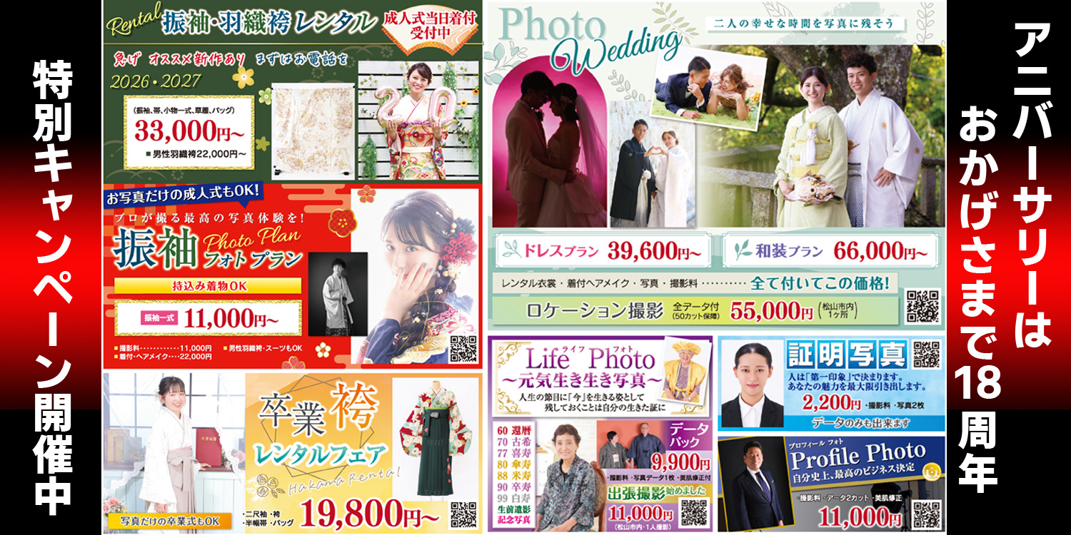お知らせ お知らせ 2025.10.27 定休日変更のお知らせ キャンペーン 2025.09.08 チラシ vol.147 キャンペーン 2025.07.08 2026・2027成人式 早期割引開催中 キャンペーン 2025.07.08 成人式・卒業式 お友達紹介10000円キャッシュバックキャンペーン お知らせ一覧キャンペーン一覧