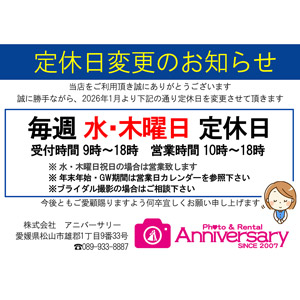 平素はアニバーサリーをご利用いただき、ありがとうございます 七五三の為、11月の営業日の変更をお知らせさせて頂きます 営業日 …